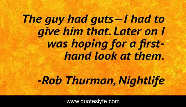 "Rob Thurman, Nightlife Quotes." Quoteslyfe.com, 2025. Mon. 08 Dec. 2025. <https://www.quoteslyfe.com/quote/The-guy-had-guts-I-had-to-198102>.