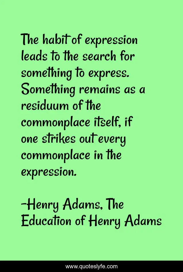 This page presents the quote "The habit of expression leads to the search for something to express. Something remains as a residuum of the commonplace itself, if one strikes out every commonplace in the expression.". Author of this quote is Henry Adams, The Education of Henry Adams. .