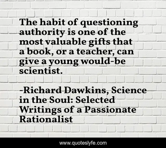 "Richard Dawkins, Science in the Soul: Selected Writings of a Passionate Rationalist Quotes." Quoteslyfe.com, 2025. Fri. 05 Dec. 2025. <https://www.quoteslyfe.com/quote/The-habit-of-questioning-authority-is-one-256116>.