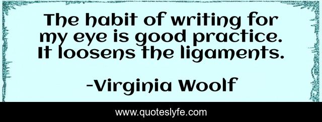 This page presents the quote "The habit of writing for my eye is good practice. It loosens the ligaments.". Author of this quote is Virginia Woolf. This quote is about journaling, virginia-woolf, writing,.