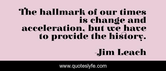 This page presents the quote "The hallmark of our times is change and acceleration, but we have to provide the history.". Author of this quote is Jim Leach. This quote is about acceleration, change,.