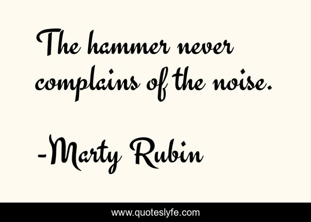 "Marty Rubin Quotes." Quoteslyfe.com, 2025. Sat. 06 Dec. 2025. <https://www.quoteslyfe.com/quote/The-hammer-never-complains-of-the-noise-200770>.