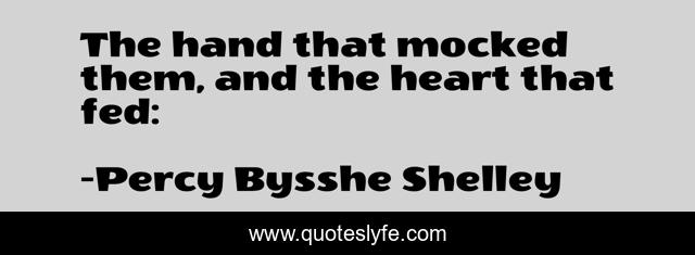 This page presents the quote "The hand that mocked them, and the heart that fed:". Author of this quote is Percy Bysshe Shelley. This quote is about fear, impermanence, power,.