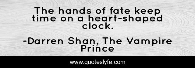 This page presents the quote "The hands of fate keep time on a heart-shaped clock.". Author of this quote is Darren Shan, The Vampire Prince. This quote is about cirque, freak, fate, mulds, watch, deep, harkat, cirque-du-freak, deep-thoughts,.
