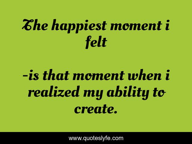"is that moment when i realized my ability to create. Quotes." Quoteslyfe.com, 2025. Mon. 08 Dec. 2025. <https://www.quoteslyfe.com/quote/The-happiest-moment-i-felt-199527>.