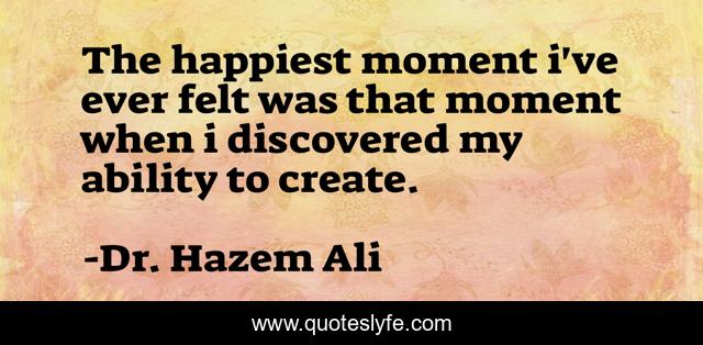 This page presents the quote "The happiest moment i've ever felt was that moment when i discovered my ability to create.". Author of this quote is Dr. Hazem Ali. This quote is about coding, create, creation, programming, science,.
