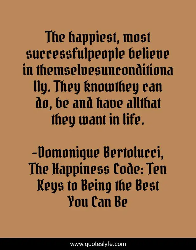 "Domonique Bertolucci, The Happiness Code: Ten Keys to Being the Best You Can Be Quotes." Quoteslyfe.com, 2025. Sun. 07 Dec. 2025. <https://www.quoteslyfe.com/quote/The-happiest-most-successfulpeople-believe-in-themselvesunconditionally-215368>.