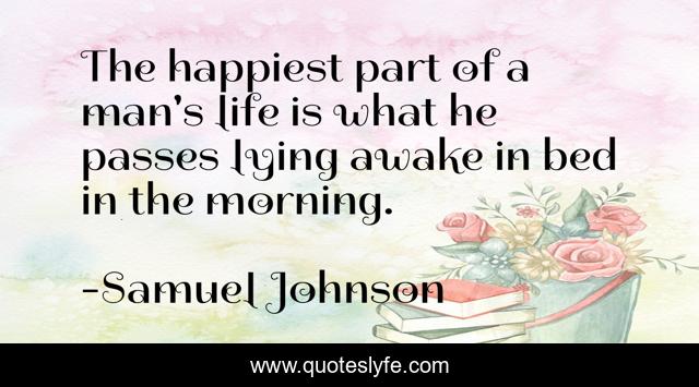This page presents the quote "The happiest part of a man's life is what he passes lying awake in bed in the morning.". Author of this quote is Samuel Johnson. This quote is about life, lying, man,.