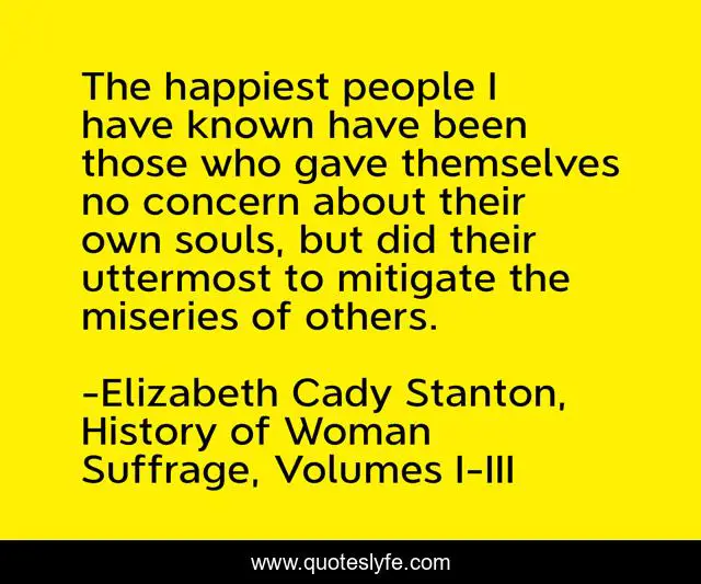 "Elizabeth Cady Stanton, History of Woman Suffrage, Volumes I-III Quotes." Quoteslyfe.com, 2025. Mon. 08 Dec. 2025. <https://www.quoteslyfe.com/quote/The-happiest-people-I-have-known-have-136206>.