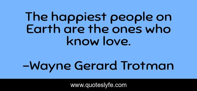 This page presents the quote "The happiest people on Earth are the ones who know love.". Author of this quote is Wayne Gerard Trotman. This quote is about life, life-and-living, love, quotable, wise-words, wisdom, happiness, life-lessons, life-philosophy,.