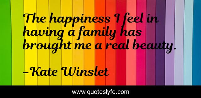 This page presents the quote "The happiness I feel in having a family has brought me a real beauty.". Author of this quote is Kate Winslet. This quote is about me, family, beauty,.