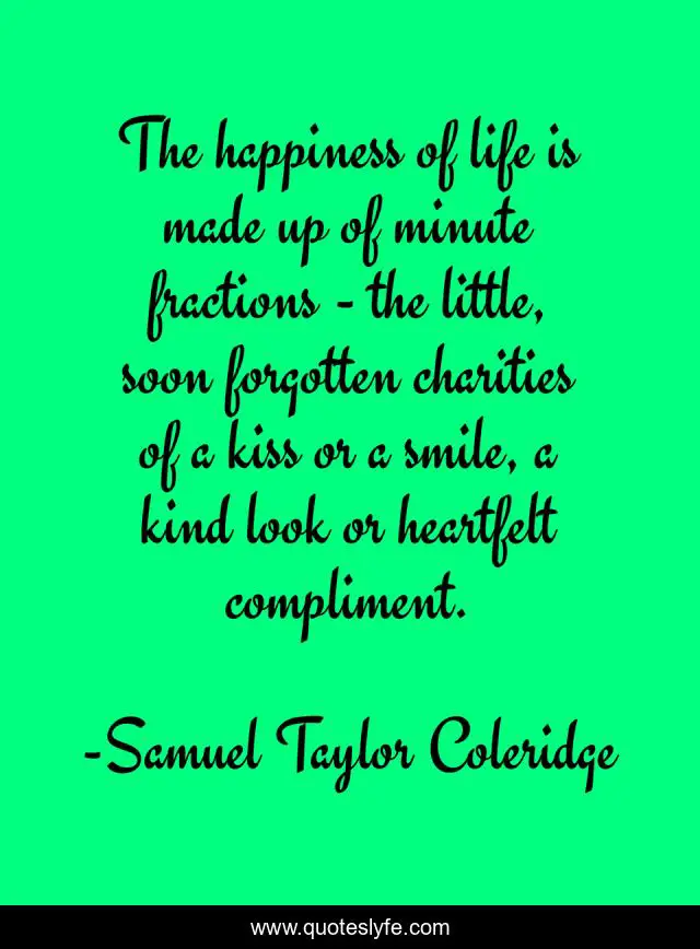 "Samuel Taylor Coleridge Quotes." Quoteslyfe.com, 2025. Mon. 08 Dec. 2025. <https://www.quoteslyfe.com/quote/The-happiness-of-life-is-made-up-297180>.
