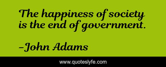 This page presents the quote "The happiness of society is the end of government.". Author of this quote is John Adams. This quote is about society, end, government,.