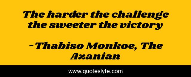 "Thabiso Monkoe, The Azanian Quotes." Quoteslyfe.com, 2025. Fri. 05 Dec. 2025. <https://www.quoteslyfe.com/quote/The-harder-the-challenge-the-sweeter-the-83178>.