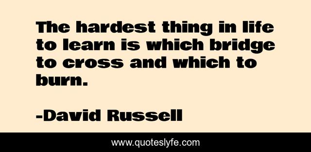 This page presents the quote "The hardest thing in life to learn is which bridge to cross and which to burn.". Author of this quote is David Russell. This quote is about bridge, burn, learn,.