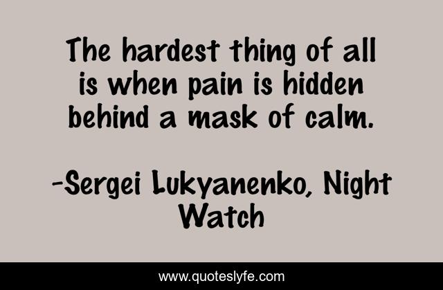 This page presents the quote "The hardest thing of all is when pain is hidden behind a mask of calm.". Author of this quote is Sergei Lukyanenko, Night Watch. This quote is about pain, calm, emotions,.