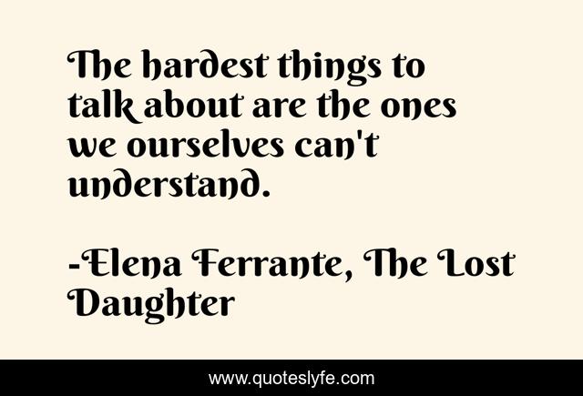 This page presents the quote "The hardest things to talk about are the ones we ourselves can't understand.". Author of this quote is Elena Ferrante, The Lost Daughter. This quote is about communication, understanding, meaning, difficulties, struggle, words,.
