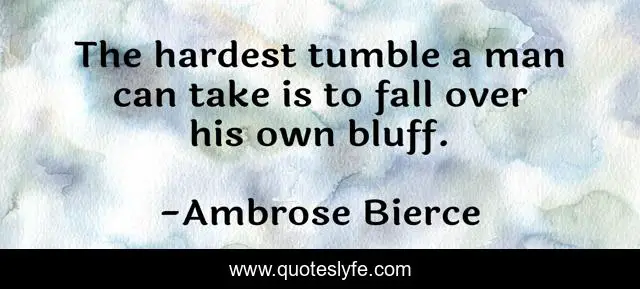 This page presents the quote "The hardest tumble a man can take is to fall over his own bluff.". Author of this quote is Ambrose Bierce. This quote is about lies, bluffing,.