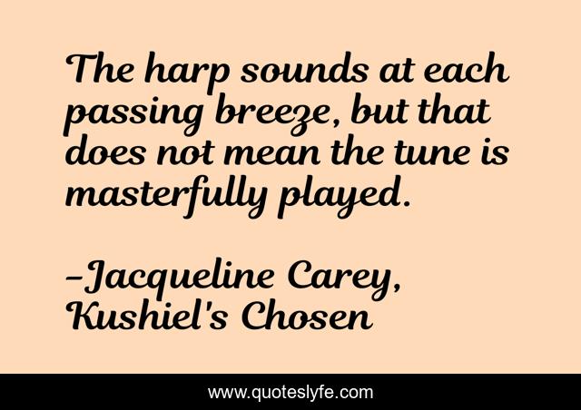 This page presents the quote "The harp sounds at each passing breeze, but that does not mean the tune is masterfully played.". Author of this quote is Jacqueline Carey, Kushiel's Chosen. This quote is about jacqueline-carey, kushiel-s-chosen, music, inspirational, enthusiasm,.