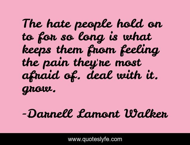 This page presents the quote "The hate people hold on to for so long is what keeps them from feeling the pain they're most afraid of. deal with it. grow.". Author of this quote is Darnell Lamont Walker. This quote is about hate, growth, pain,.