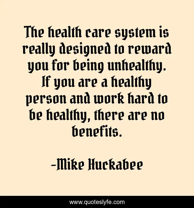 This page presents the quote "The health care system is really designed to reward you for being unhealthy. If you are a healthy person and work hard to be healthy, there are no benefits.". Author of this quote is Mike Huckabee. This quote is about healthy, work, work hard,.