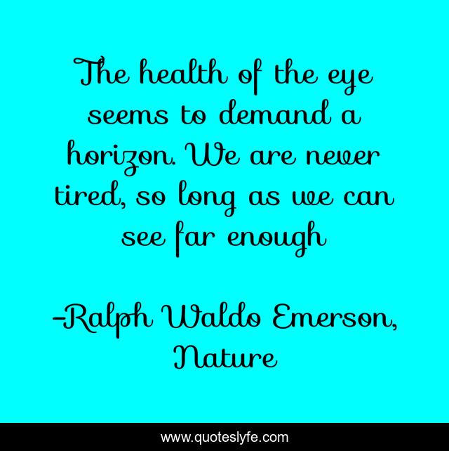"Ralph Waldo Emerson, Nature Quotes." Quoteslyfe.com, 2025. Sat. 06 Dec. 2025. <https://www.quoteslyfe.com/quote/The-health-of-the-eye-seems-to-137073>.