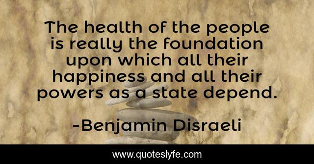 This page presents the quote "The health of the people is really the foundation upon which all their happiness and all their powers as a state depend.". Author of this quote is Benjamin Disraeli. This quote is about foundation, health, people,.