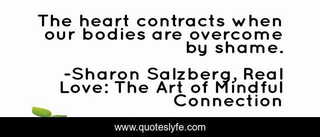 This page presents the quote "The heart contracts when our bodies are overcome by shame.". Author of this quote is Sharon Salzberg, Real Love: The Art of Mindful Connection. This quote is about mindfulness, secrets, shame, suffering, meditation, real-love,.