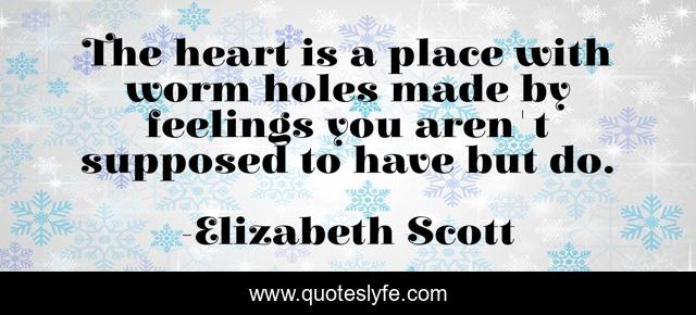 This page presents the quote "The heart is a place with worm holes made by feelings you aren't supposed to have but do.". Author of this quote is Elizabeth Scott. This quote is about life, love, author, feelings, break, book, grace-novel, affection,.