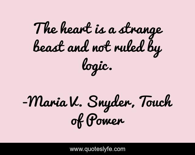 This page presents the quote "The heart is a strange beast and not ruled by logic.". Author of this quote is Maria V. Snyder, Touch of Power. This quote is about love, emotions, affection,.