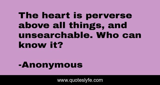 This page presents the quote "The heart is perverse above all things, and unsearchable. Who can know it?". Author of this quote is Anonymous. .