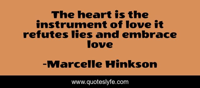 This page presents the quote "The heart is the instrument of love it refutes lies and embrace love". Author of this quote is Marcelle Hinkson. .