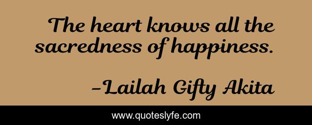 This page presents the quote "The heart knows all the sacredness of happiness.". Author of this quote is Lailah Gifty Akita. This quote is about heart, inspiring, happiness, joyful-living, life-philosophy,.