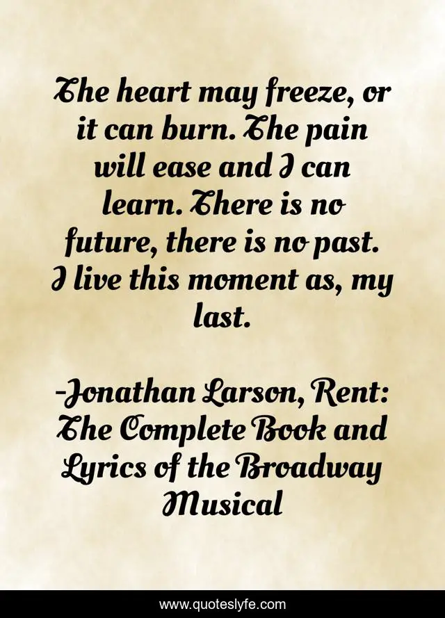 "Jonathan Larson, Rent: The Complete Book and Lyrics of the Broadway Musical Quotes." Quoteslyfe.com, 2025. Mon. 08 Dec. 2025. <https://www.quoteslyfe.com/quote/The-heart-may-freeze-or-it-can-3161>.