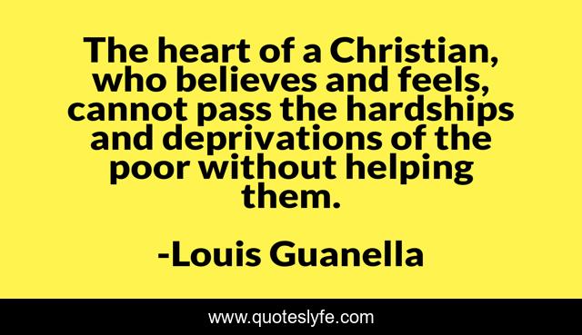 This page presents the quote "The heart of a Christian, who believes and feels, cannot pass the hardships and deprivations of the poor without helping them.". Author of this quote is Louis Guanella. This quote is about compassion, discipleship,.