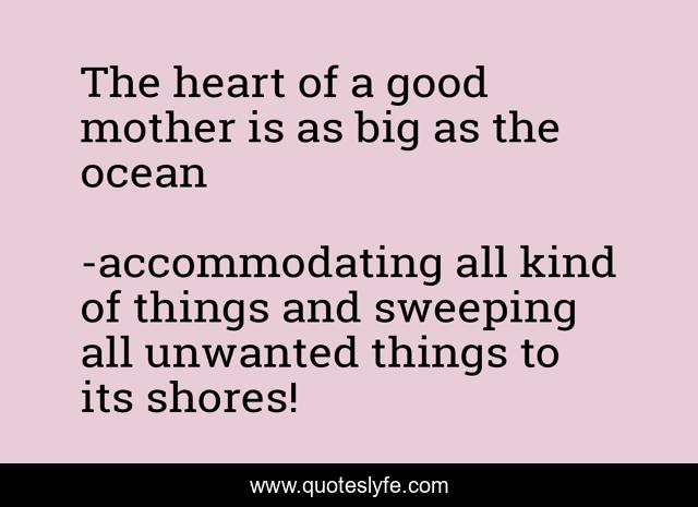 This page presents the quote "The heart of a good mother is as big as the ocean". Author of this quote is accommodating all kind of things and sweeping all unwanted things to its shores!. .
