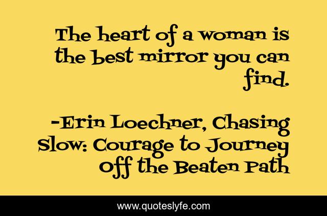 This page presents the quote "The heart of a woman is the best mirror you can find.". Author of this quote is Erin Loechner, Chasing Slow: Courage to Journey Off the Beaten Path. This quote is about relationships, friendship, vulnerability, femininity, inspirational, enthusiasm, friends,.