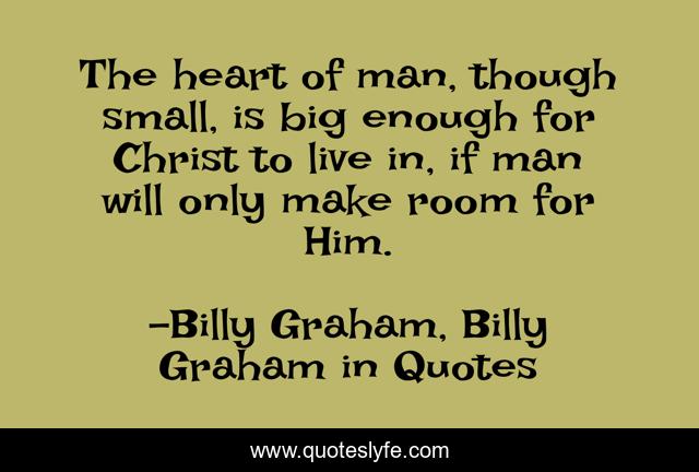 This page presents the quote "The heart of man, though small, is big enough for Christ to live in, if man will only make room for Him.". Author of this quote is Billy Graham, Billy Graham in Quotes. This quote is about heart, billy-graham,.