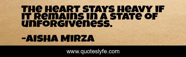This page presents the quote "The heart stays heavy if it remains in a state of unforgiveness.". Author of this quote is Aisha Mirza. This quote is about heart, forgiveness, life-lessons, islamic,.