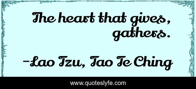 This page presents the quote "The heart that gives, gathers.". Author of this quote is Lao Tzu, Tao Te Ching. This quote is about compassion, love, tao-te-ching, affection, wisdom,.