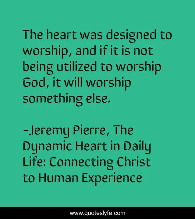 "Jeremy Pierre, The Dynamic Heart in Daily Life: Connecting Christ to Human Experience Quotes." Quoteslyfe.com, 2025. Sat. 06 Dec. 2025. <https://www.quoteslyfe.com/quote/The-heart-was-designed-to-worship-and-80796>.