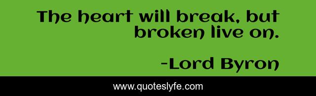 This page presents the quote "The heart will break, but broken live on.". Author of this quote is Lord Byron. This quote is about heart, live, broken,.
