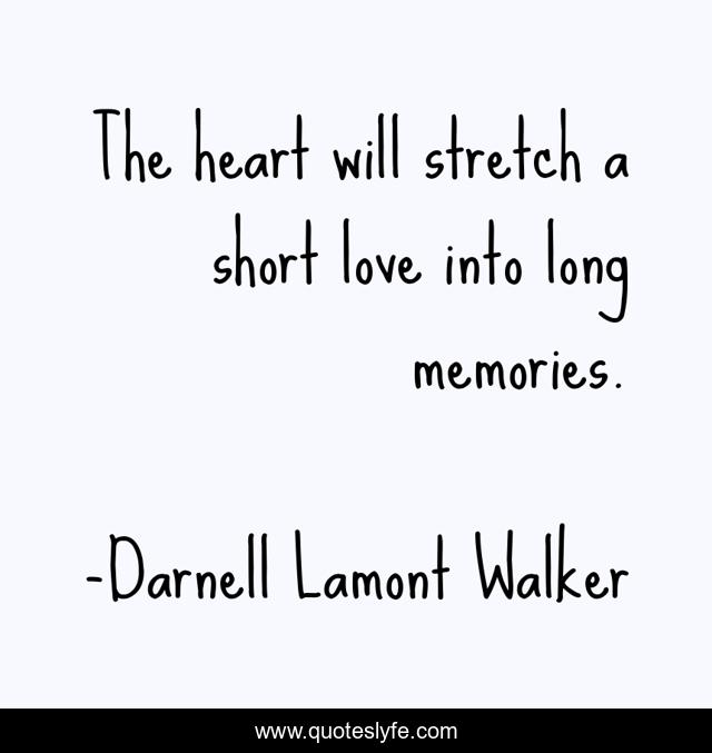 This page presents the quote "The heart will stretch a short love into long memories.". Author of this quote is Darnell Lamont Walker. This quote is about loving-someone, heart, love, affection, memories,.
