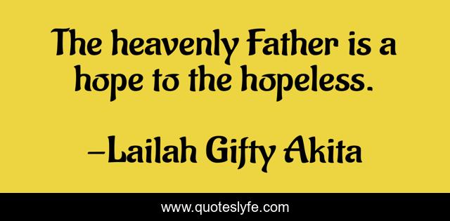 This page presents the quote "The heavenly Father is a hope to the hopeless.". Author of this quote is Lailah Gifty Akita. This quote is about encouragement, faith, don-t-give-up, hope, hopeless,.