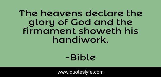 This page presents the quote "The heavens declare the glory of God and the firmament showeth his handiwork.". Author of this quote is Bible. .