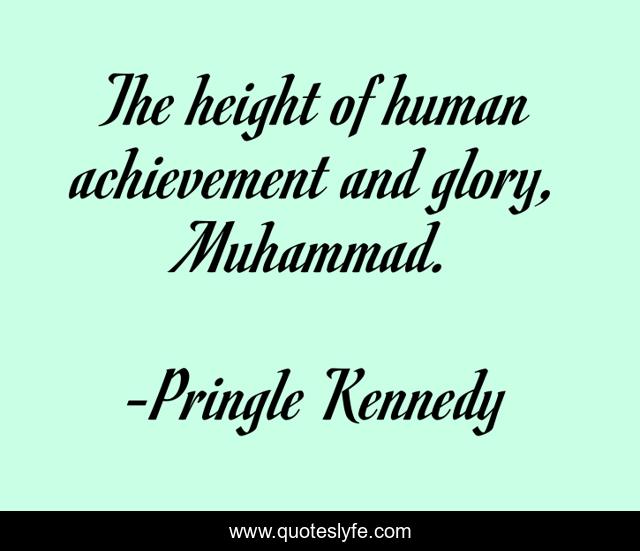 This page presents the quote "The height of human achievement and glory, Muhammad.". Author of this quote is Pringle Kennedy. This quote is about freedom-of-speech, people, height, culture, human, lessons, hindu, writer, amazing,.