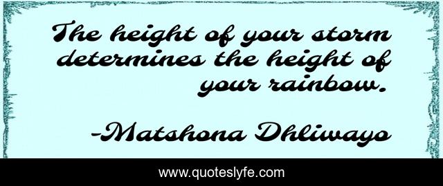 "Matshona Dhliwayo Quotes." Quoteslyfe.com, 2025. Sat. 06 Dec. 2025. <https://www.quoteslyfe.com/quote/The-height-of-your-storm-determines-the-83091>.