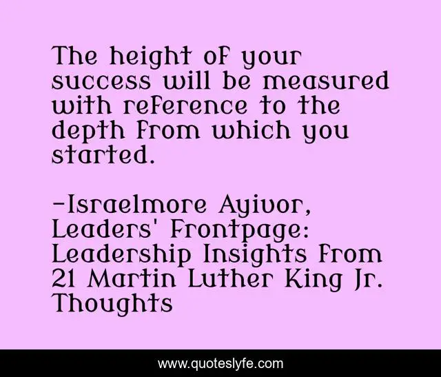 "Israelmore Ayivor, Leaders' Frontpage: Leadership Insights from 21 Martin Luther King Jr. Thoughts Quotes." Quoteslyfe.com, 2025. Mon. 08 Dec. 2025. <https://www.quoteslyfe.com/quote/The-height-of-your-success-will-be-32718>.