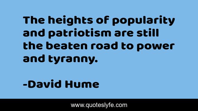 This page presents the quote "The heights of popularity and patriotism are still the beaten road to power and tyranny.". Author of this quote is David Hume. This quote is about tyranny, patriotism, road,.