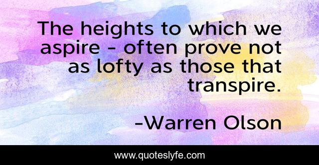 This page presents the quote "The heights to which we aspire - often prove not as lofty as those that transpire.". Author of this quote is Warren Olson. This quote is about life-philosophy, life, life-lessons,.
